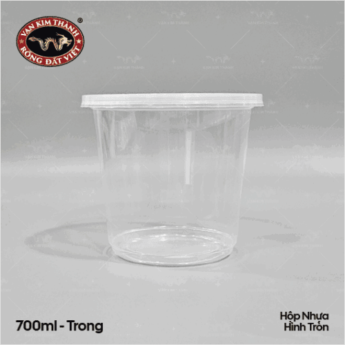 Hộp nhựa tròn trong 700ml + nắp sản xuất từ nhựa PP chất lượng cao với chất nhựa trong suốt, chắc chắn. Chất lượng gia công cao tạo nên sản phẩm đẹp, sắc nét.